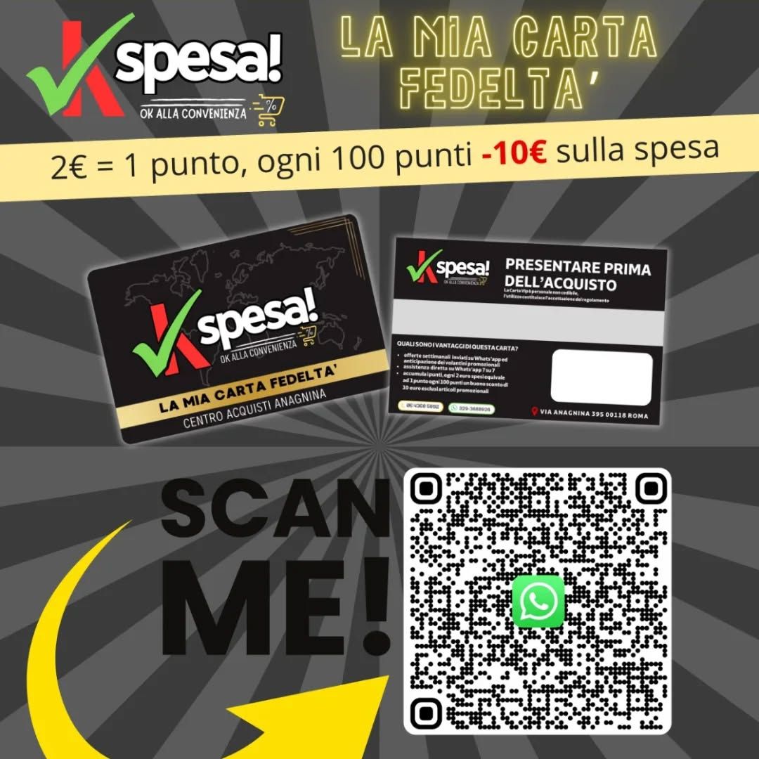 La Carta Fedeltà KSPESA è pensata per premiare la tua convenienza ogni giorno. Con la nostra fidelity card puoi accedere a vantaggi esclusivi, promozioni dedicate e iniziative riservate ai clienti più affezionati. Un modo semplice e gratuito per trasformare ogni acquisto in un’opportunità di risparmio.