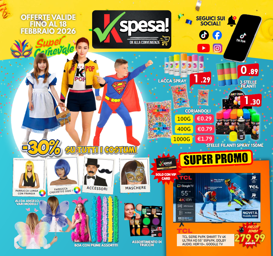 Nella sezione Volantini di KSPESA puoi consultare in modo semplice e veloce tutte le offerte attive e quelle delle campagne precedenti. Qui trovi il volantino in corso, sempre aggiornato con le promozioni del momento, le occasioni imperdibili e le novità dedicate ai nostri reparti: tecnologia, casa, brico, igiene personale e molto altro. È lo strumento ideale per programmare i tuoi acquisti e approfittare dei prezzi più convenienti.